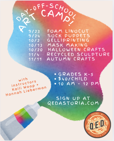 Instructors Kaili + Hannah will lead K-5 students through fun, unique projects from crafting our own sock puppets to using recycled materials to make sculptures!